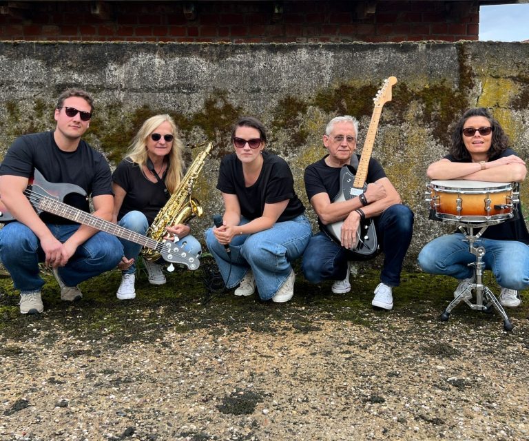 Mit Gesang, Saxophon, Gitarre, Bass und Schlagzeug spielt die Band einen bunten Mix aus Hits und Geheimtipps.